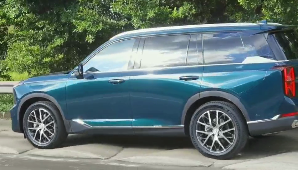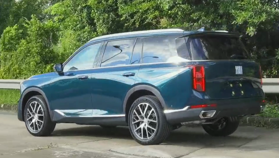 车身侧面彰显出流畅且舒展的视觉风格配合较为方正的车身造型营造出了SUV车型与生俱来的力量感与肌肉感,而且方正的外观设计也说明了车内有着更加充足的乘坐空间,此外还针对B柱、C柱、D柱进行了熏黑处理营造出一种悬浮式车顶的视觉效果,并比凹凸有致的线条进行勾勒,还换装了双五辐式铝合金轮毂,兼顾大气风格的同时又不失时尚气息。