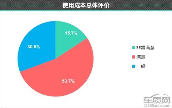 对于奥迪Q2L使用成本的总体评价中,参与调查的车主给出了相对客观的评价,选择“非常满意”和“满意”的车主占比分别为15.7和53.7%,认为“一般”的车主占比为30.6%,未有明确表示不满意的车主。