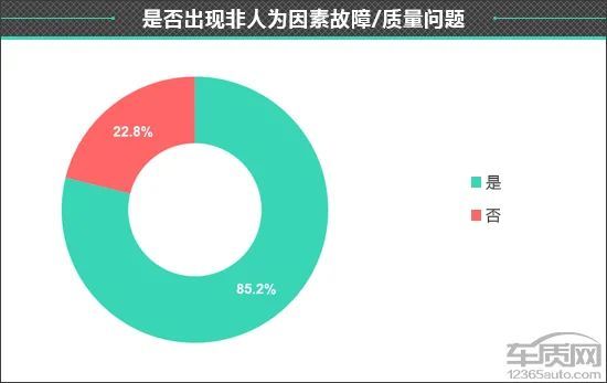根据调查结果显示,在接收到的108份有效问卷中,有92份问卷显示车辆已经出现过非人为故障或质量问题,占比超八成。