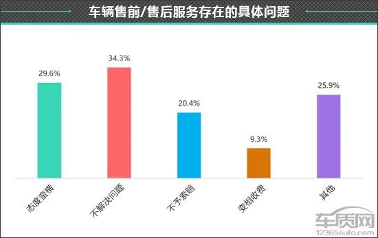通过进一步调查得知,车主对于奥迪Q2L在售前/售后服务的抱怨多集中在服务态度方面,这一点也体现在“车辆售前/售后服务存在的具体问题”中。部分车主认为奥迪Q2L在售后服务中存在“态度蛮横”和“不解决问题”等问题。