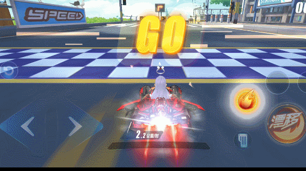 通过第一个集装箱弯道,漂移集满氮气后,使用CWW喷提速。在第二个弯道处通过快速出弯调整路线,释放一个小喷提速通过。在第三个弯道入弯时使用小漂双喷进行氮气延续保持高速通过,车手要注意踩前方星星加速带并控制赛车靠左行驶,便于利用赛车转向通过前方假弯。
