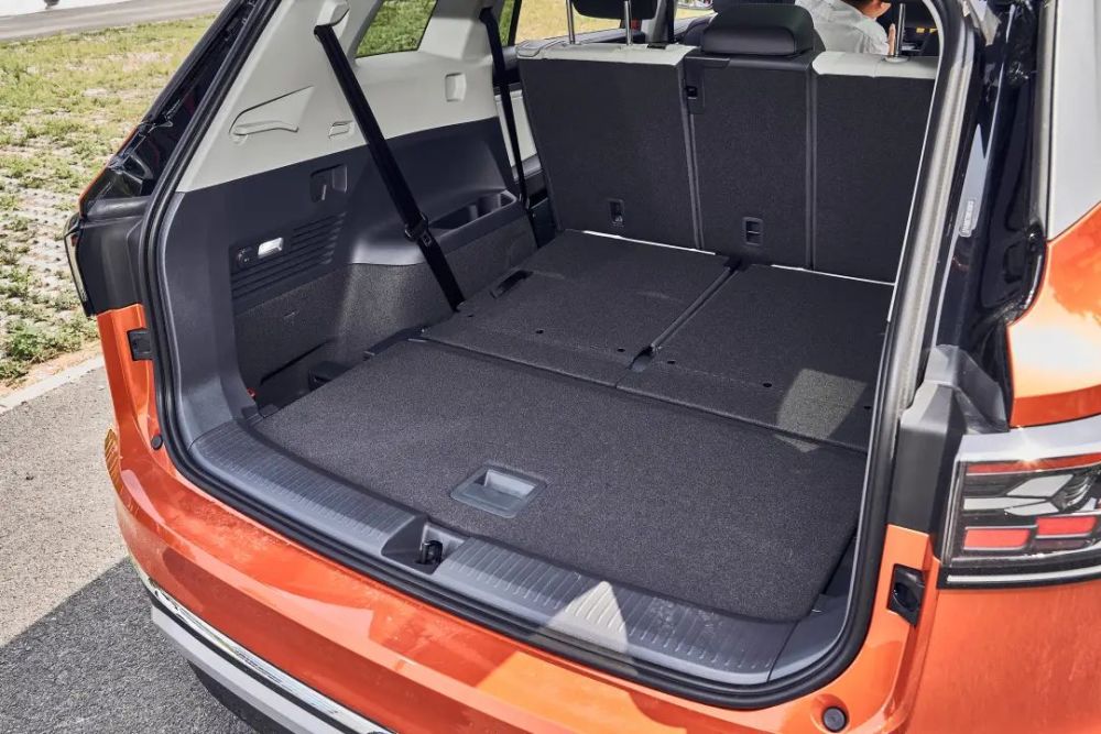 而在具体的产品力方面,定位中大型SUV的ID.6 CROZZ首先有着超大的空间。它轴距接近3米,车长接近4米9,采用7座布局,不过第三排的乘坐舒适度一般,仅能作为短途应急使用。但在第三排放倒的情况下,你将获得一个超大的第二排空间和后备箱空间。