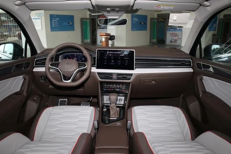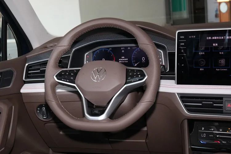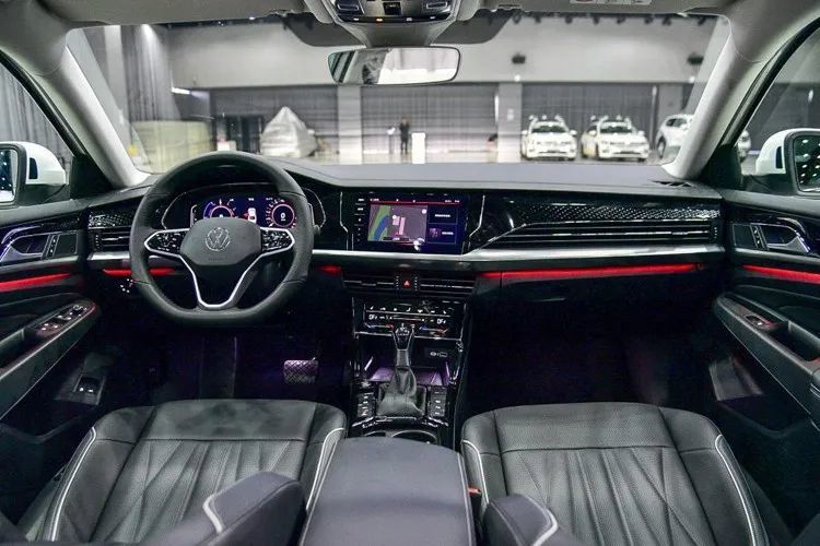 做进车内,新车中控布局虽无明显变化,但新增的超大尺寸悬浮式中控屏着实给了我们不少惊喜,保守估计13英寸。除此之外,新车也换装了品牌最新的三幅式方向盘和更大尺寸的VW车标。