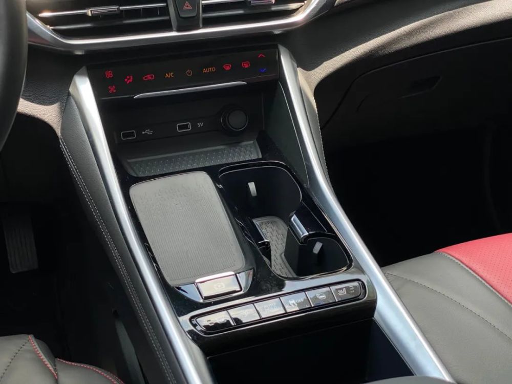 回到驾驶位,新款的内饰变动不算小。重点是改用了电子怀挡,原来的变速箱挡把变成手机无线充电以及储物空间,同时下方挖出一块储物格,换挡机构的变化大大增加了车厢的便利性和实用性,值得好评。