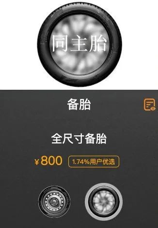第四步,选择是否将备胎升级为全尺寸(800元,轮圈同主胎)和增加原厂行车记录仪(800元,盯盯拍);