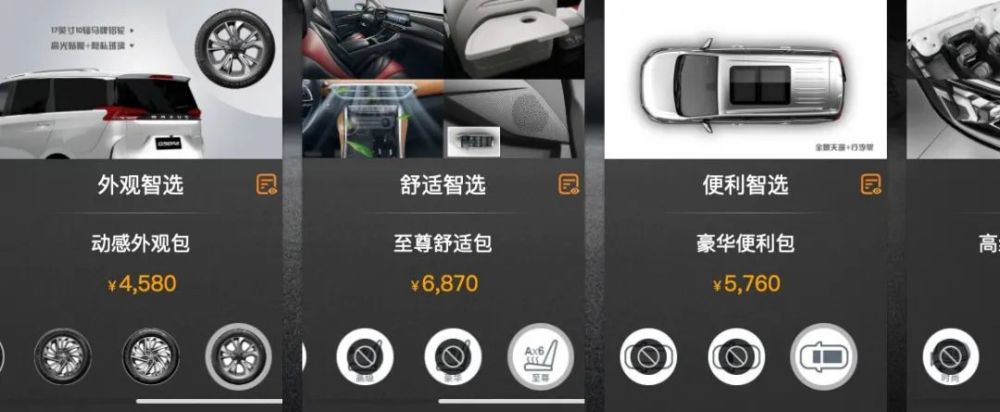 虽然实际上不存在绝对自由的搭配(例如便利分类中选择不要天窗就不能选最贵的科技包),但仍意味着用户有相当大的自主权,根据个人需求选择选装包而无需为用不上的配置买单,丰俭由人。