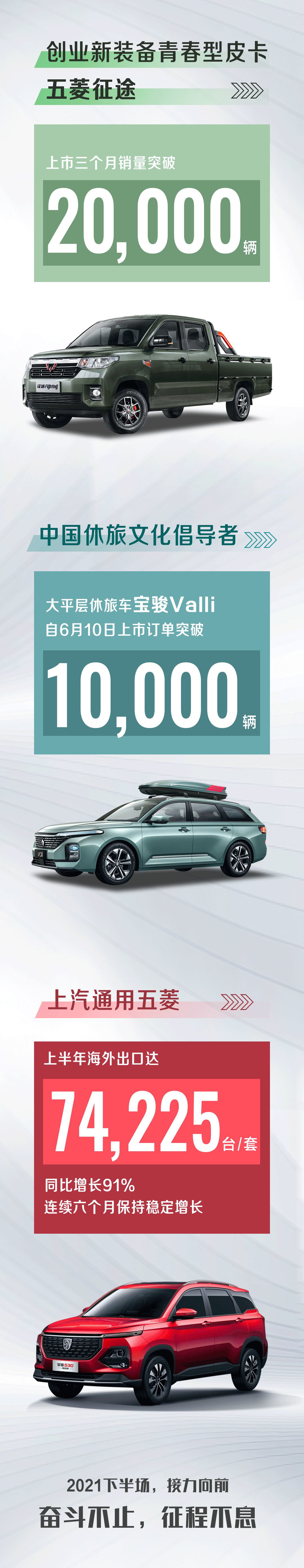 IT之家 7 月 24 日消息 近期,上汽通用五菱汽车表示,1-6 月,企业整体销量达 884195 辆,同比增长 39.5%, 连续 15 个月实现同比正增长。其中,五菱品牌实销 693351 辆,宝骏品牌实销 123057 辆,出口汽车 74225 台/套,连续 6 个月稳步增长。