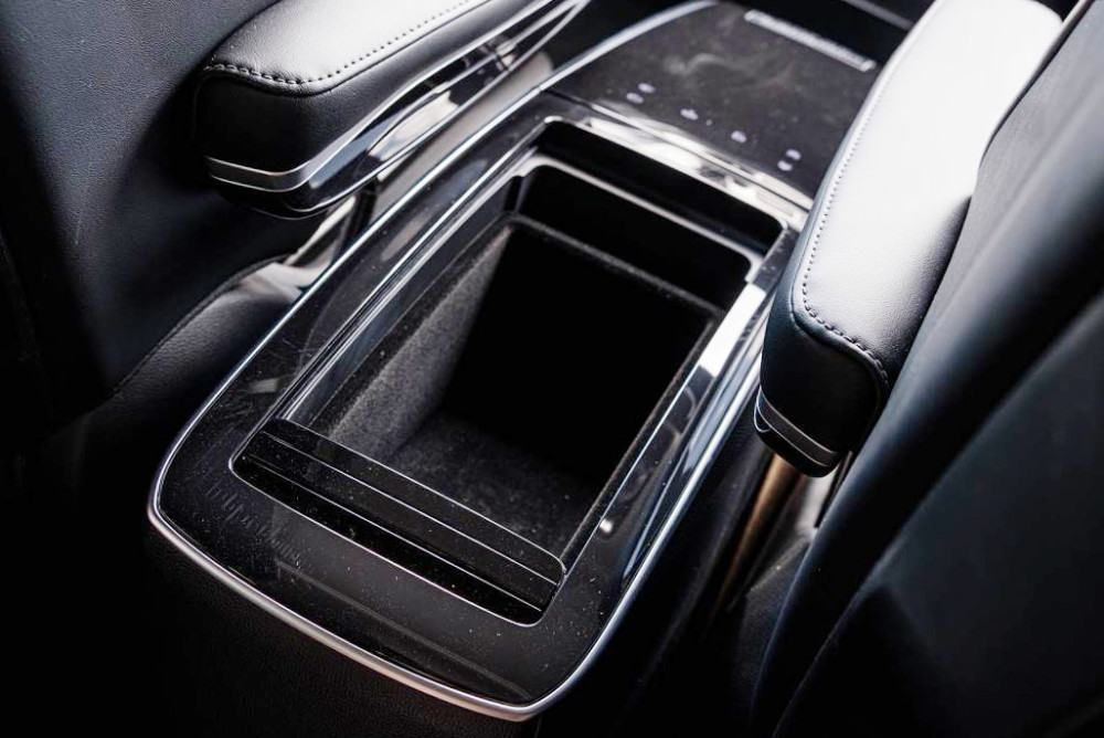 另外新款车型还对现款标志性的“魔吧”进行了优化,从实车图来看,“魔吧”后侧的容积要比现款明显变大了,现款“魔吧”所配置的茶具确实很有格调,但是实用性一般。