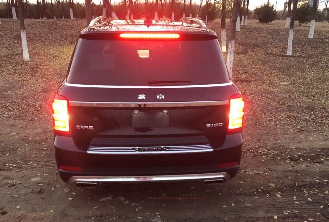 从车尾观察,BJ90的整个尾部造型较为饱满,其中新车的尾灯依旧采用竖状设计,中间通过粗壮的镀铬饰条进行连接,与前脸设计有着一定的呼应。新车的后包围同样采用了镀铬处理,排气为扁平化的双边共双出布局。