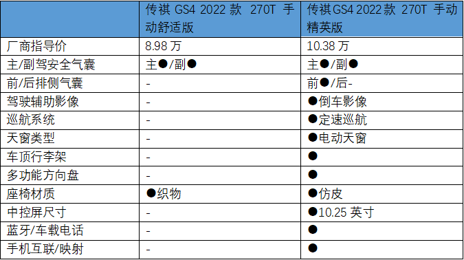 如果想买手动挡车型,更推荐售价10.38万元的手动精英版,虽然价格贵了1.4万元,但配置上多了前排侧气帘、倒车影像、定速巡航、电动天窗、车顶行李架、多功能方向盘、10.25英寸中控触摸屏、手机映射、后排出风口等配置,无论是在安全性或是舒适性的提升上都更值得买。