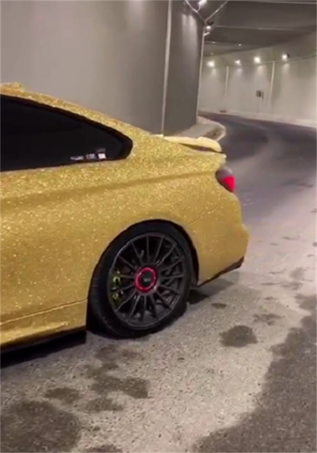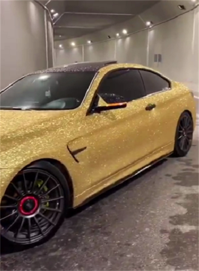 最近,在国外就有人实拍了一台全车镶钻的宝马M4,整车金色亮闪闪,上街回头率百分百。
