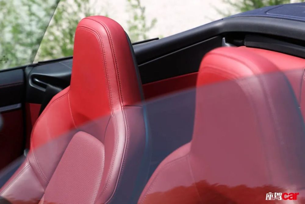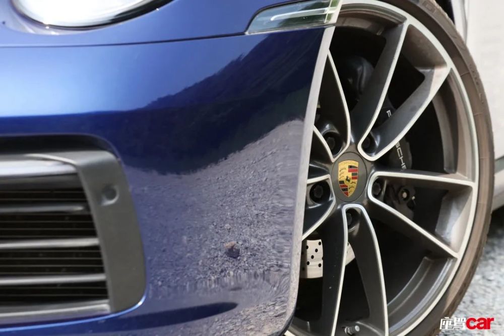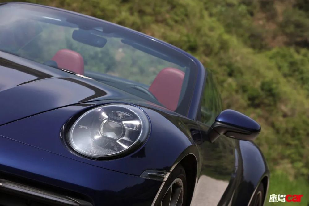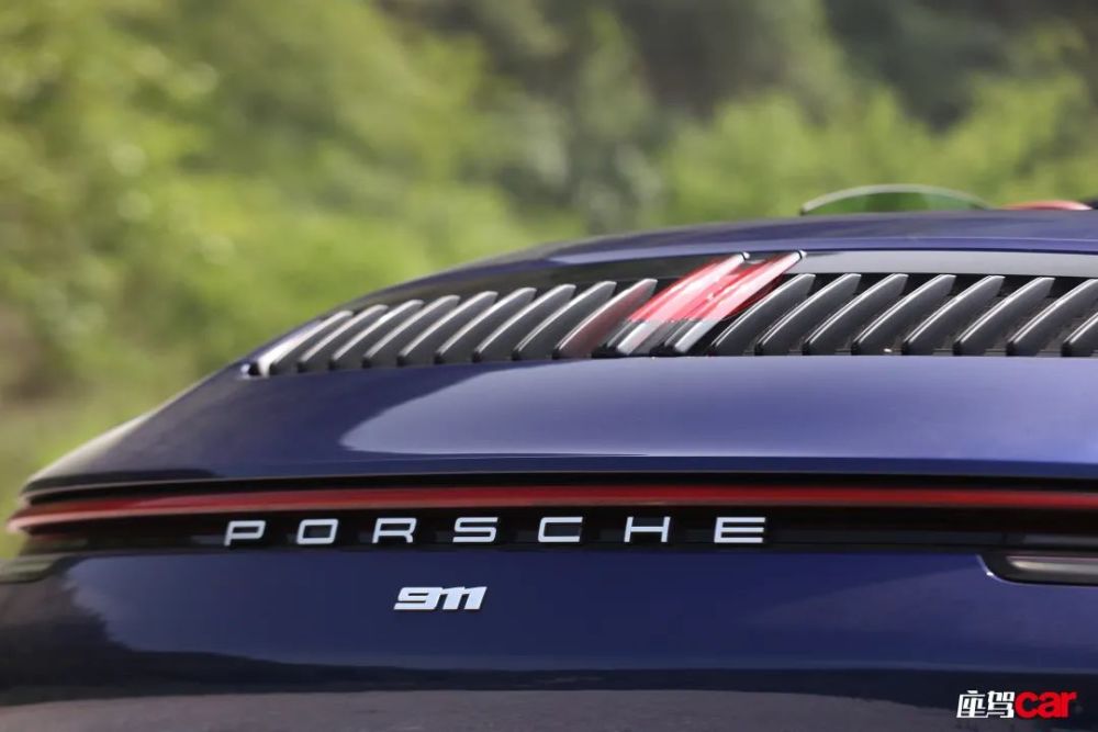 现在摆在我面前的是一部全新的911 Carrera Cabriolet 。对比同样配置的硬顶版本,这部敞篷版本的911要贵出去20%左右的价格。或许你觉得它没有硬顶经典,同样又不如Targa优雅。但是911的魔力就在于每款车型都有自己不一样的味道,当Cabriolet打开车顶的那一刹那,它足够张扬,足以张扬到我们心甘情愿地去为这多出的20%买单。每一部跑车都有自己最迷人的地方,除了911亘古不变的蛙眼甲壳虫造型,似乎每一代911最大的改变无一例外都集中在车尾。在这台911 Carrera Cabriolet身上最吸引我的依旧是它更加饱满的车尾。全贯穿式的尾灯不再是四驱车型的专属,992标志性的高位刹车灯与进气格栅融为一体。选装的两根运动排气被镶嵌到后杠之中,竟无比和谐。与硬顶版一气呵成的尾部线条不同,为了装下收起后的顶篷,911 Carrera Cabriolet 的尾部明显更加宽大隆起更高,当然里面还装着那台熟悉的3.0T双涡轮增压水平对置6缸“心脏”。