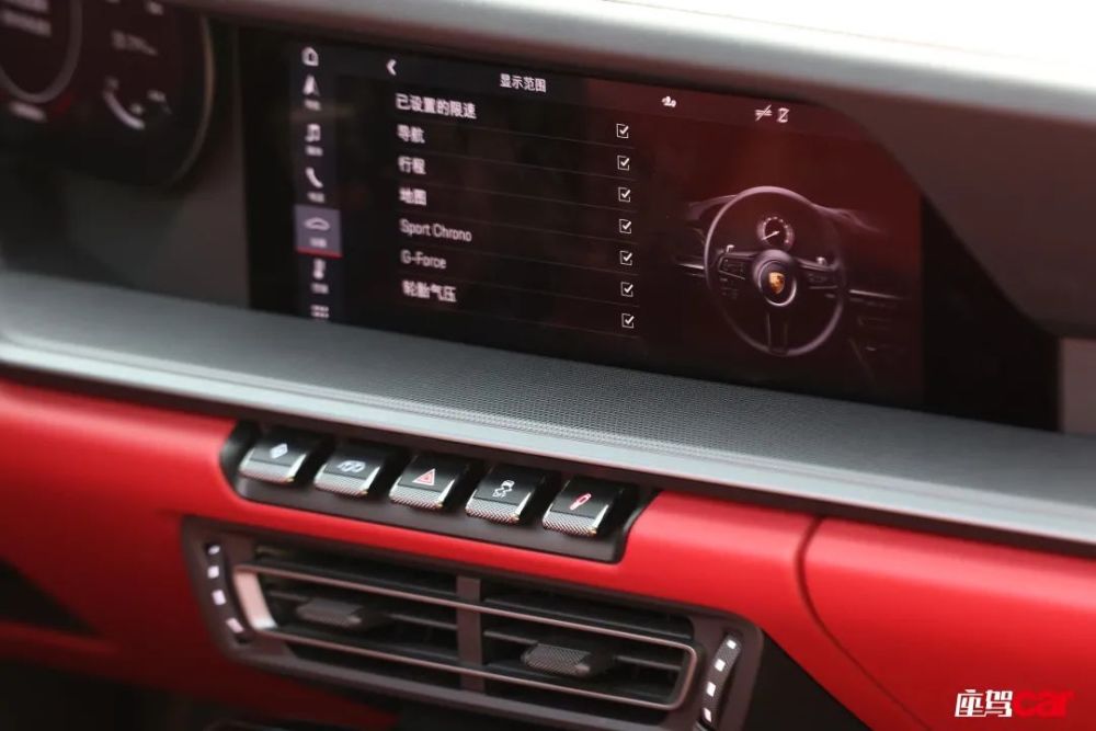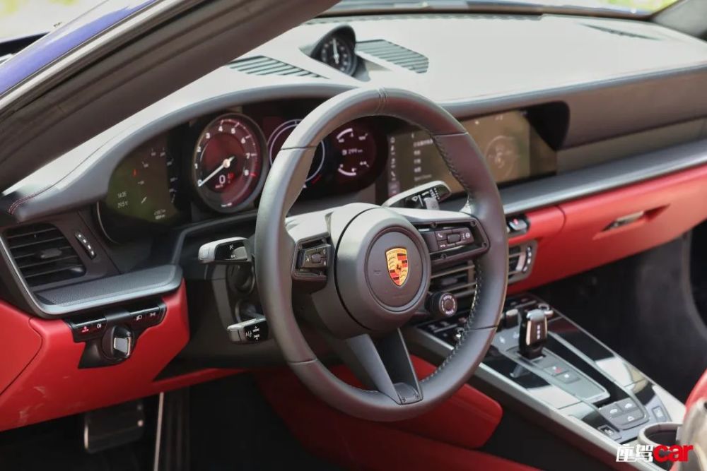 置身于911的座舱内,我开始不由自主地对那些斯图加特工程师们发出由衷赞美,一切都是刚刚好,出色的人体工程学设计让每个驾驶911的人都能轻松享受贴地飞行的感觉。眼前开阔的视野让你丝毫没有压抑的感觉,不需要像同级其他跑车一样需要升高座椅才能照顾好车头,仪表盘、方向盘、脚下两个踏板位置都舒适的恰到好处。911是少有的长距离通勤都不会感到疲惫的GT跑车,选装的18向电动调节座椅绝对功不可没。一体式的赛车座椅对身体的贴合度极佳,在关键时刻又能给予我们最有力的支撑,坐上去仿佛有魔力一般能够时刻给予我安全感。