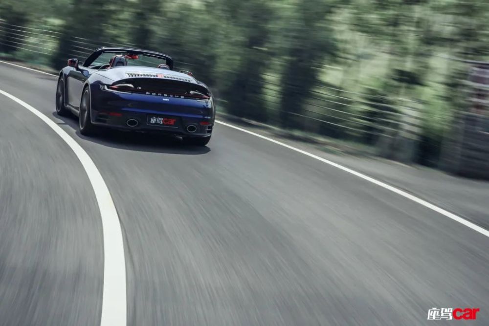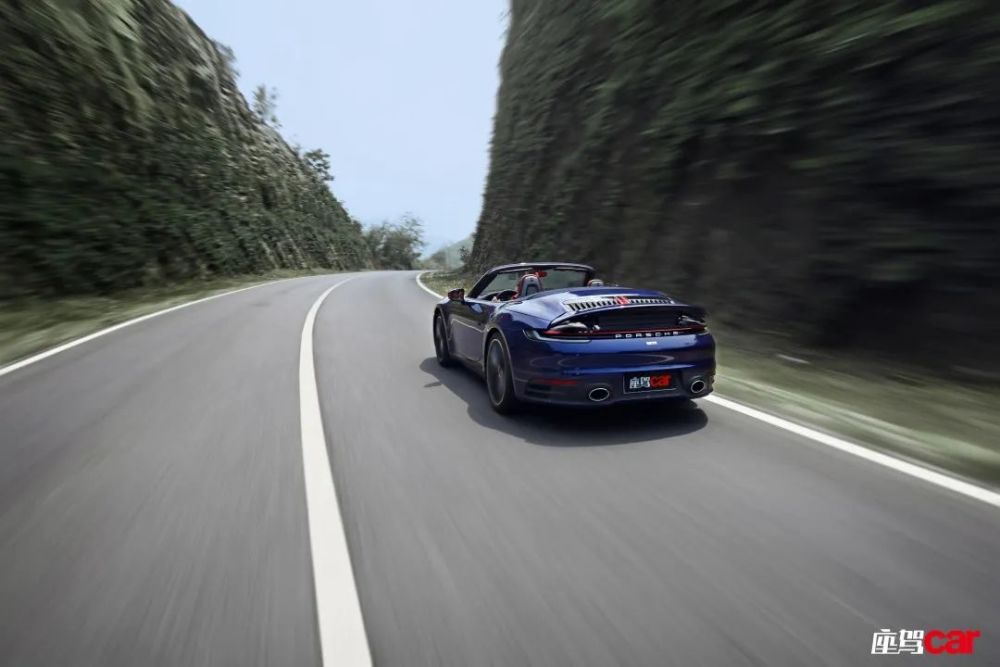 然而这种酣畅淋漓的过弯感受真的能给人一种无比上头的快感,让你误以为自己车技超群。并随后指挥大脑控制着我的双手和右脚在接下来的几个弯道里不断去挑战更晚的刹车点,更大的过弯角度。但这台911 Carrera Cabriolet让我看不到极限,它像是被写入了固定程序的巡航导弹一样,无论我怎么去挑衅它,都能不屑地从容应对。过弯动作一气呵成,每次修正方向的误差小到几乎可以忽略不计,它的目标似乎只有一个,就是实现每一次弯道中的“精确制导”。