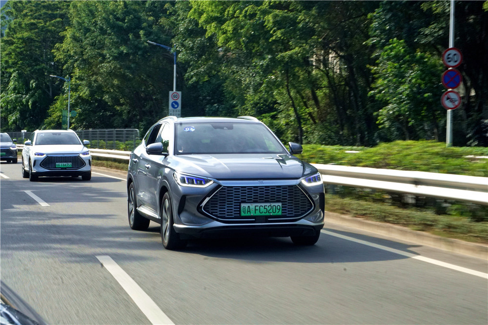 比亚迪DM-i超级混动是一种以电为主的混动技术,发动机在绝大部分的工况下都处于熄火状态,电机驱动占比超过80%,城市工况下电机驱动的占比甚至已经接近100%。在电量不足时,发动机能以最高效的方式进行快速充电,只有在高速以及一些高效工况下才会直接参与动力输出,同时动力的衔接也非常细腻,因此车辆的行驶质感与纯电动车非常接近。