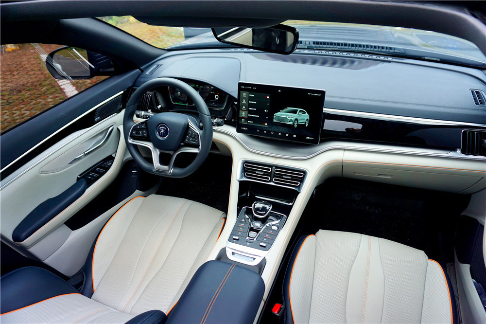 同时,宋PLUS DM-i配备了12.3英寸仪表+12.8英寸旋转悬浮大屏,内置DiLink3.0系统,支持智能语音交互,OTA远程升级等众多功能,营造出浓郁的科技氛围。