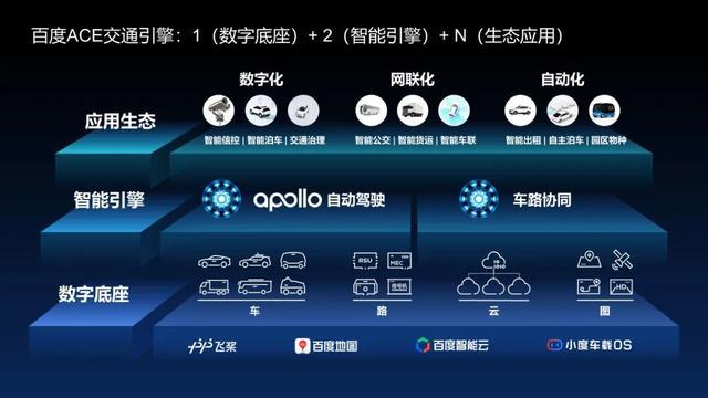 一大数字底座指“车”、“路”、“云”、“图”等数字交通基础设施,包括小度车载OS、飞桨、百度智能云、百度地图;