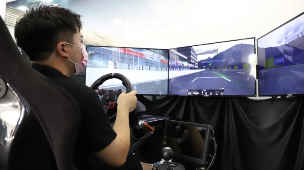 场地的另外一边则放置有两台赛车模拟器,如果想用最低的成本感受最逼真的赛道驾驶,请来这里坐一坐。要知道,不少赛车手的“业余爱好”便是坐在赛车模拟器上埋头苦练,更好的设备也会更有利于玩家提升车感,尤其对于新赛道而言,模拟器不失为一种快速上手的好办法。