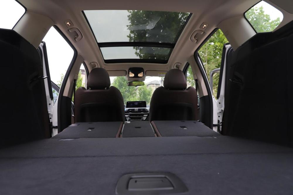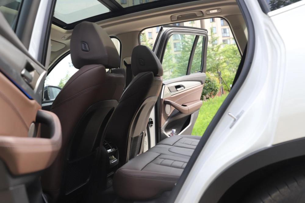 在空间方面,BMW iX3提供了一个非常具有震撼力的全景天窗,这让车内采光效果非常好,座椅支撑性以及舒适性都相当不错,尤其是前排座椅还提供了可调腿托,适宜不同身高的消费者。后排座椅坐垫非常厚实,腿部空间并不算太大,但更宽的座椅坐垫带来相当不错的乘坐舒适感,再加上后排可调座椅以及独立空调,这让后排乘客的乘坐相当的惬意。