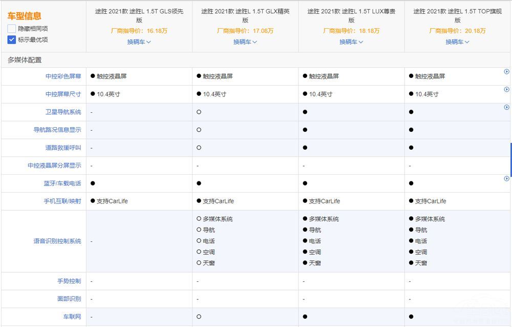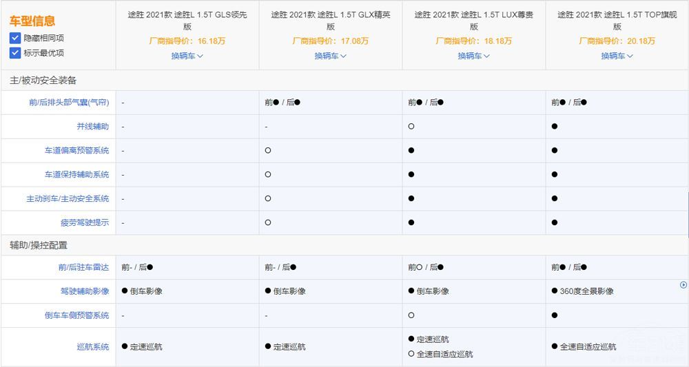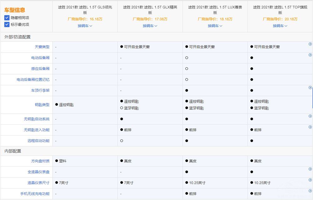 基于前面的介绍不难看出,第五代途胜L无论是设计、尺寸、配置还是动力,都比上一代车型要出色不少。但当我们落实到具体配置上来,还是能看出不同配置车型之间的差异,那么,究竟哪一款更值得买呢?