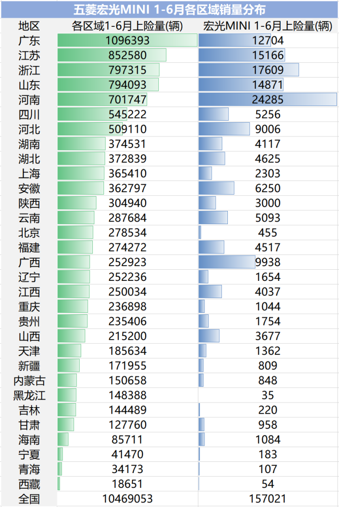 作为国内市场价格最低、销量最高的纯电动车型,五菱宏光MINIEV的主攻市场,自然和特斯拉、蔚来以及比亚迪等品牌不大一样,不过当我将它在各省市的区域销量一项一项查出来时,结果还是大大出乎意料: