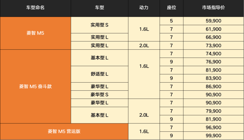 动力部分,菱智M5奋斗款搭载1.6L+5MT、2.0L+6MT两种动力系统,百公里综合油耗分别为7.9L和8.3L。1.6L三菱4A92发动机最大功率为90kW,峰值扭矩151N·m;2.0L阿特金森循环发动机,最大功率98kW,峰值扭矩200N·m。