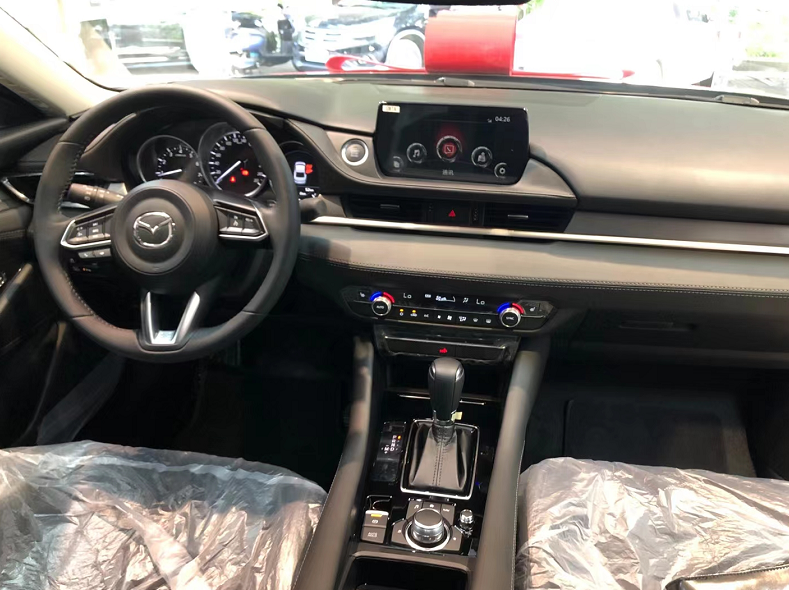 来看这辆车子的内饰设计,这辆阿特兹的内饰设计同外观一样,运动感相当的出色。但是这样的设计真的很好吗?我们来看一下中控部分,搭载了八英寸的悬浮液晶屏,屏幕的分辨率并不是很高清,行车电脑屏部分搭载了3个炮筒仪表盘,虽然运动感,赛道精神比较出色,但是也不符合当下的主流。至于其他部分,挡把依然是采用的机械挡把,黑色的换挡拨片,圆形的真皮方向盘,一切显得都是比较运动化的。