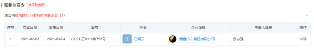 ▲涌鑫集团成为限制高消费企业、多次成为被执行人(截图自天眼查)