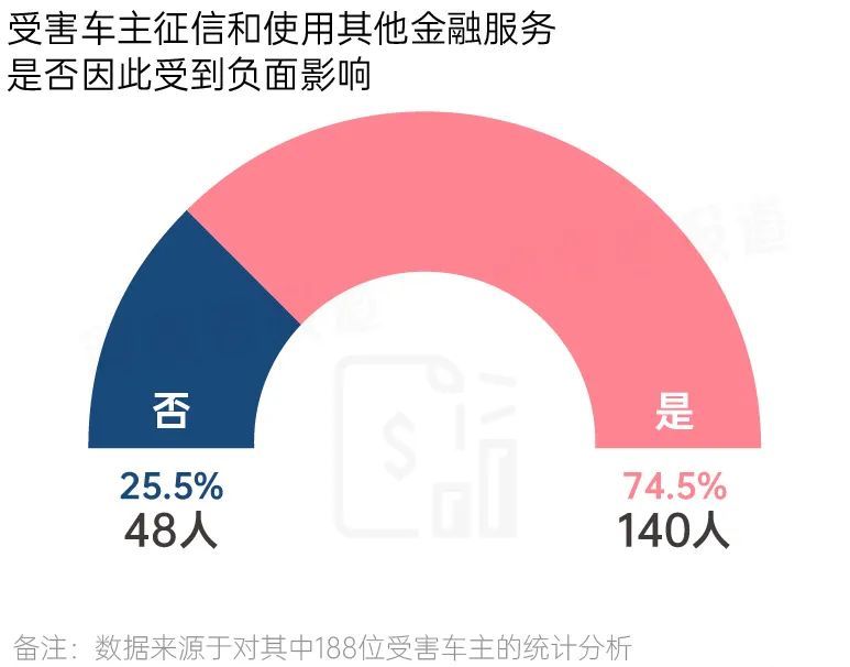 因关于是否因贷款逾期而对征信和使用其他金融负面带来负面影响方面,74.5%的车主选择了“是”。