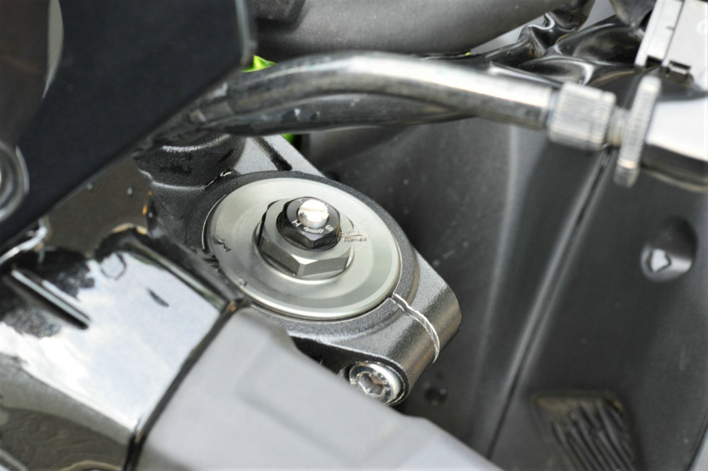 第一人称骑行视角下的车头布局干净利落,井然有序的走线,规整的手把按键,体现出川崎的设计和组装工艺。