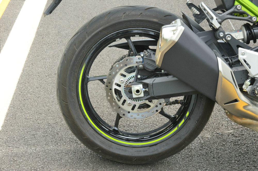 虽然川崎Z900的价格达到了10万出头,但是这根后平叉的观感确实有点掉档次;轮胎方面配备邓普禄Sportmax RoadSport 2,擅长湿地的表现,以及日常通勤和长途旅行。