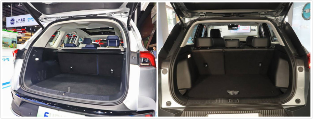 上汽大通MAXUS EUNIQ 6(左)与广汽埃安AION V后备箱对比(右)