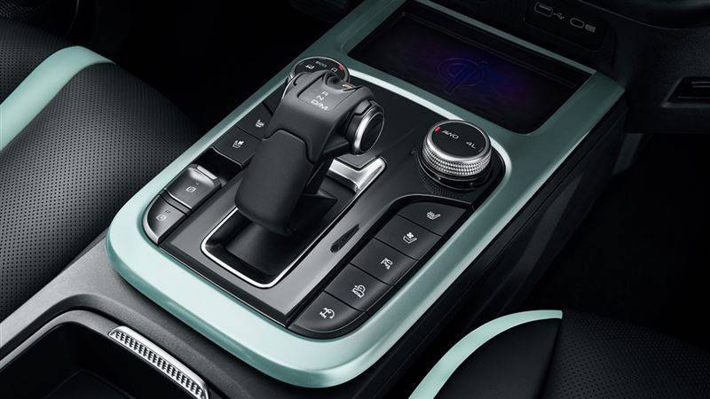 外观方面,坦克300城市版更为精致。车头的进气格栅、车侧的饰条以及车顶的行李架均由精致的镀铬替代了粗犷的黑色塑料。同时,两侧的外后视镜外壳、车门把手和尾门把手以及两个凸出的轮眉均变成了与车身同色。而城市版车型还提供两个专属涂装:种草绿和颜值粉,以此来吸引年轻的女性消费者。