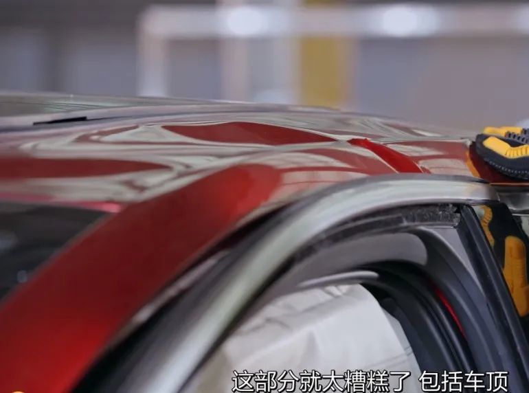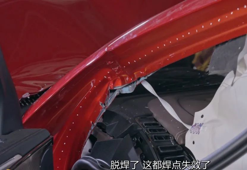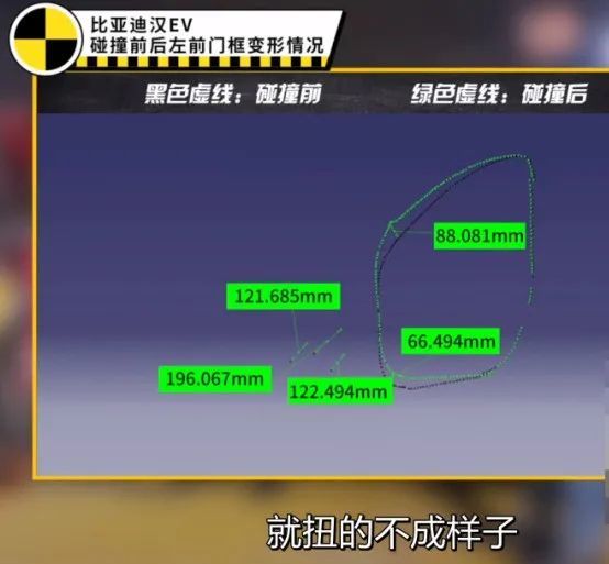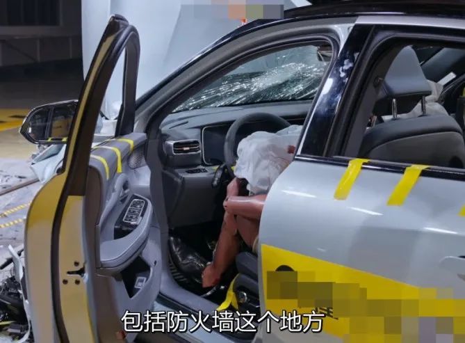 而当我们的视线跟随镜头来到汉EV时,车身变形之处就非常明显了,防火墙也有一定程度侵入量。
