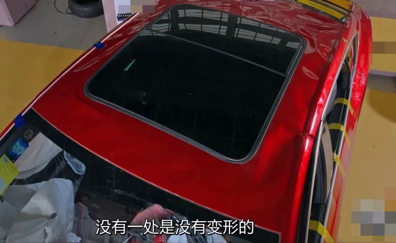 撞完之后,另一辆车车身基本完好,该车前风挡的碎裂是因为前盖而不是碰撞引起的车身形变,包括防火墙在内的成员舱,目测基本没有形变。
