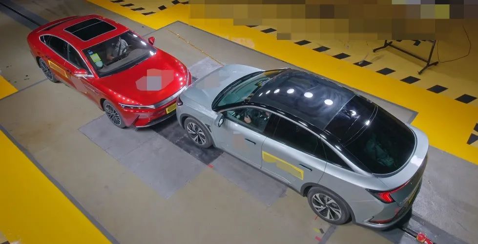 视频的内容是汉EV与另一辆售价区间、尺寸和质量都相近的车,进行时速64公里/小时的50%重叠对撞。