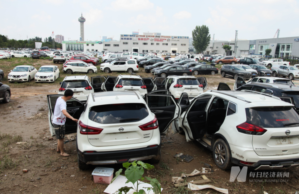 4S店门前排起长队,修车排号已超过800,维修工和拖车四处难寻。尚未出售的新车、相当数量待售豪车都成为泡水车。一家名车二手车店工作人员称,统计的损失已高达1000万~2000万元。