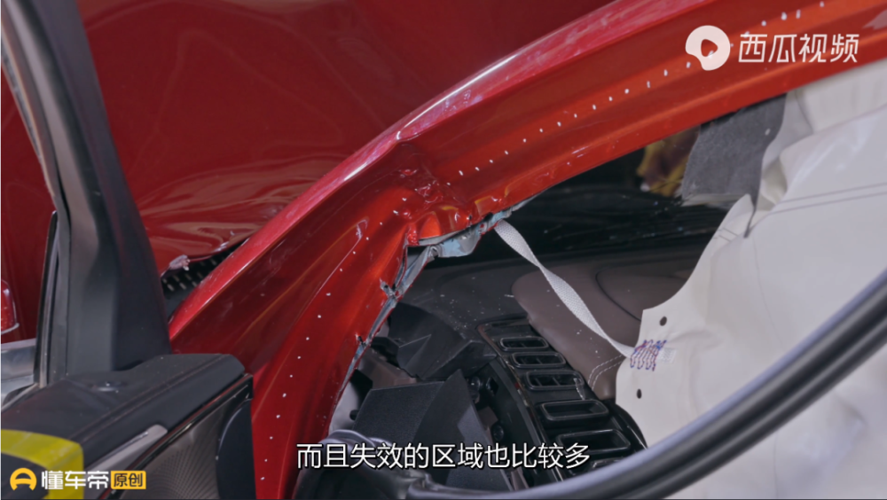 在评论比亚迪汉EV的时候主持人着重描述了变形的区域,比如A柱、门槛梁、车门等处,看结果确实汉EV比较难看,但是否结构或者用料有问题,还真不好说。这里也是许多网友认为懂车帝在带节奏的关键。