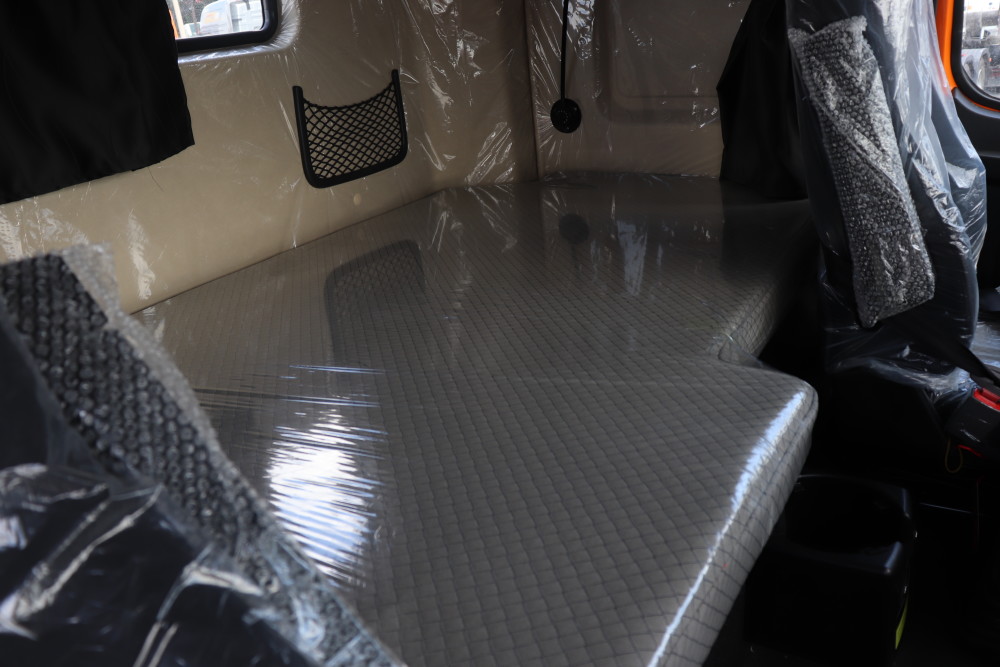 驾驶室采用后凸结构设计,扩展了整车内部空间,卧铺宽达近1米,厚度为100毫米,让卡友在工作之余可以舒心安睡。