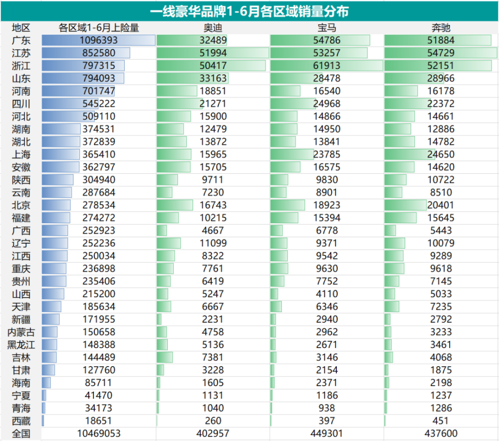 一线豪华阵营:奥迪在广东遇冷,宝马在浙江受宠