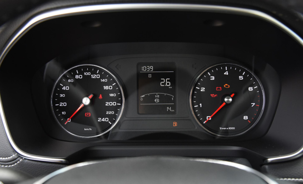荣威RX5的内饰上皮质包裹挺多,中控台的顶部为软质材料,下方则有两种皮质包裹,全车的缝线为浅黄色,与车辆的外观相搭配着。一体式的屏幕和方向盘也是为它内饰的改变做出了一点的贡献。搭配着镀铬饰件的方向盘的手感细腻,视觉效果也不错,但是按键和气囊盖的变化较大,两侧多功能按键的回馈手感变得更好,按键的面积也变大了。全液晶仪表盘只有顶配版车型有,可以显示地图、车辆信息等一些功能,反光抑制再提升一下就好了。7英寸的彩色仪表盘行车电脑和指针显示满足科技感的同时,还可以显示非常丰富的行车信息。
