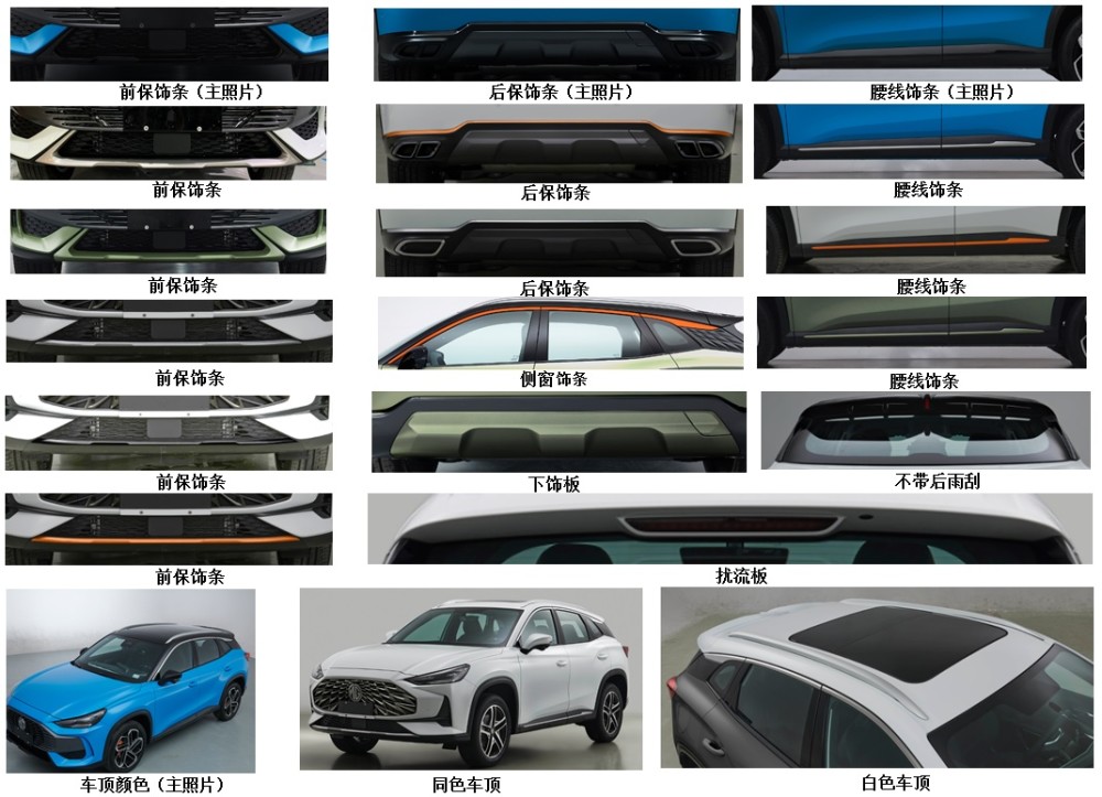 有消息称,MG ONE新车尺寸为长宽高分别为4579/1866/1601(1617)mm,轴距为2670mm,车身比全面超越丰田C-HR,轴距也长出30mm,不过从尺寸来看,车辆还是定位于小型SUV。从之前工信部申报图中曝光的图片来看,MGONE有很多样式可选,非常符合年轻人的多元化审美需求。