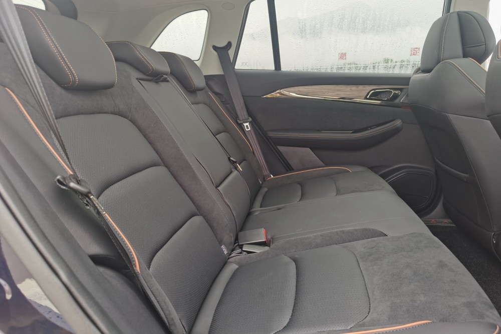 2800mm的轴距让后排空间非常宽裕,而且座椅采用了翻毛皮的材质,整体质感比较出色。椅垫非常厚实而且和柔软,椅背的角度也比较适中。所以在后排能够拥有不错的乘坐体验。同时还配备了老板按键的功能,也增加了后排乘客的尊贵感。