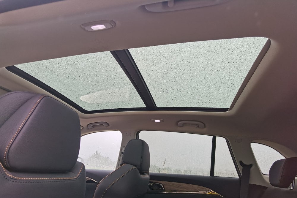 天窗的尺寸超过了0.9平米,开口直接来到了后排乘客的头部,真的很敞亮。