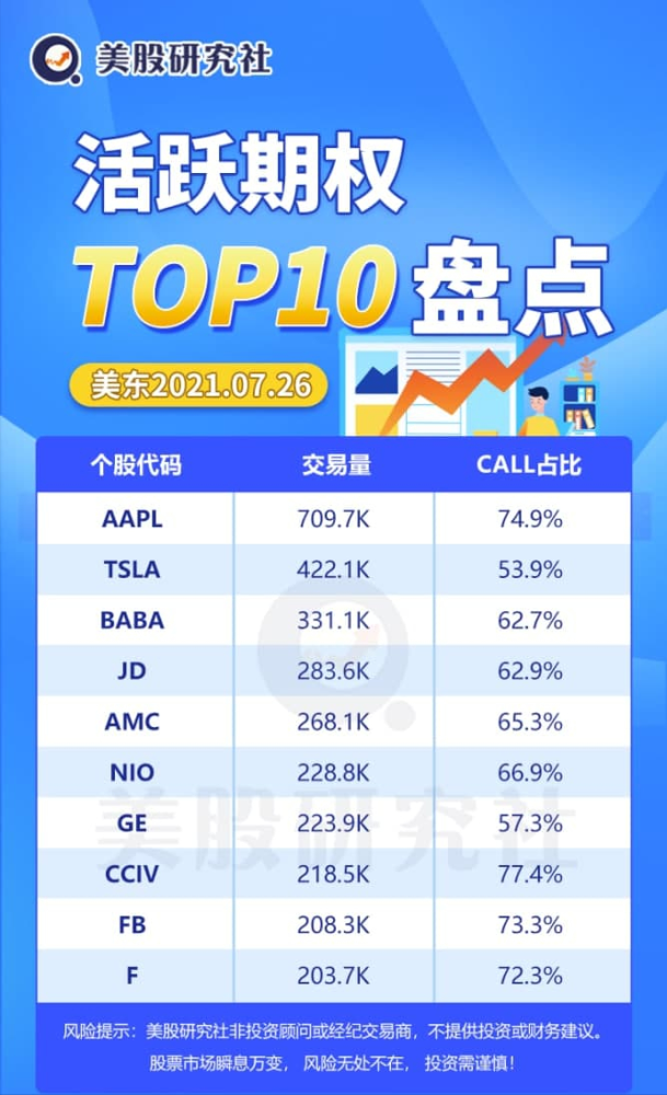美东时间7月26日,活跃期权交易Top10分别是: