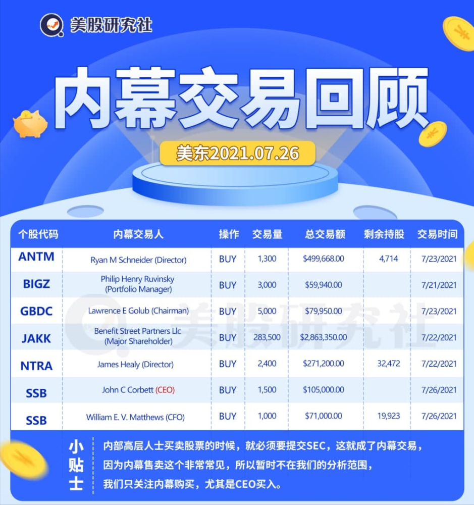 内部高层人士买卖股票的时候,就必须要提交SEC,这就成了内幕交易,因为内幕售卖这个非常常见,所以暂时不在我们的分析范围,我们只关注内幕购买。