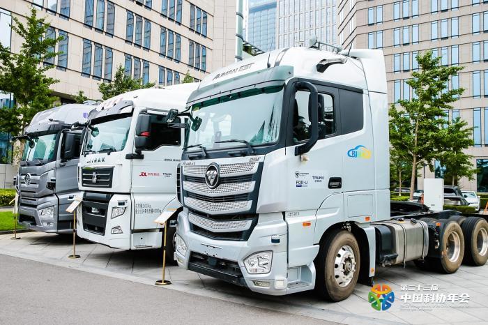 7月27日,北京市发放首批智能网联汽车商用车道路测试号牌。图为即将参与测试的重型卡车。 北京经开区管委会供图