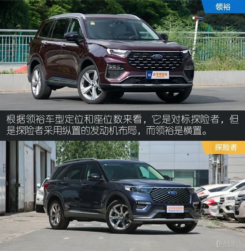 说回新出的江铃福特领裕,它是一台特供于国内市场的车型,在海外是没有,其次根据它车型定位和座位布局,应该是对标长安福特探界者,不过探界者是追求操控的纵置发动机平台,而领裕是常见的横置平台。