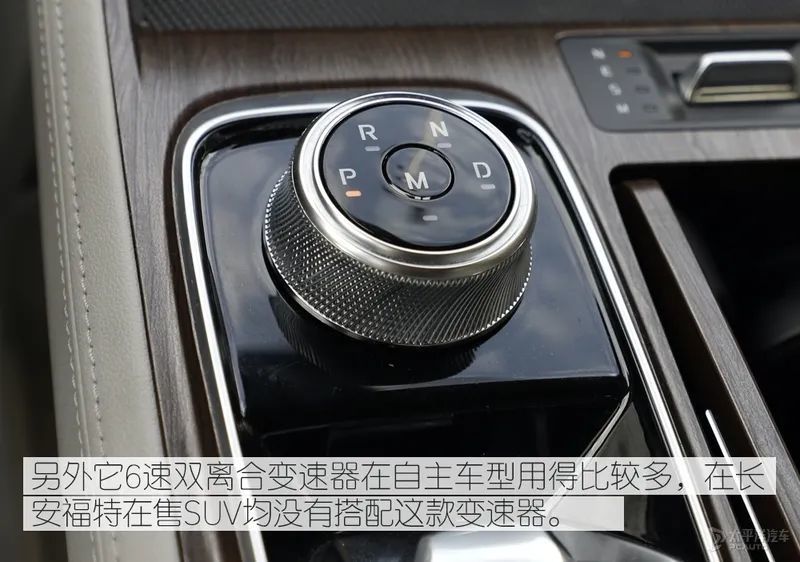 即便如此,领裕的市场定位就是一台追求舒适的家庭用车,因此动力参数有多拔尖对于潜在的消费者来说不是特别重要的事情。搭载的6速双离合变速器采用福特常见的旋钮式换挡机构。