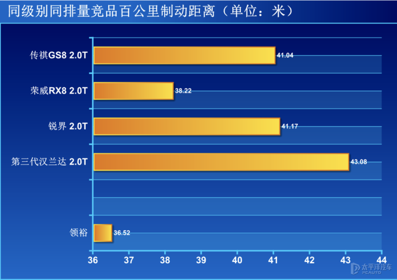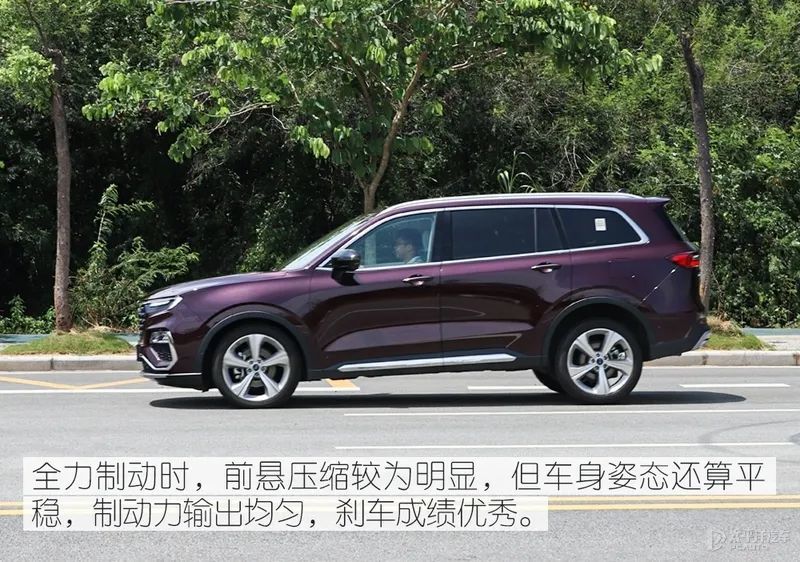全力制动时,偏软的悬挂设定导致领裕出现较明显的“点头”现象,不过整个制动测试过程制动力输出均匀,四条马牌MC6轮胎展现出强大的抓地力为领裕出色的刹车表现提供有力的帮助,最终实测的36.52米的成绩甚至比大部分紧凑型轿车还要好。